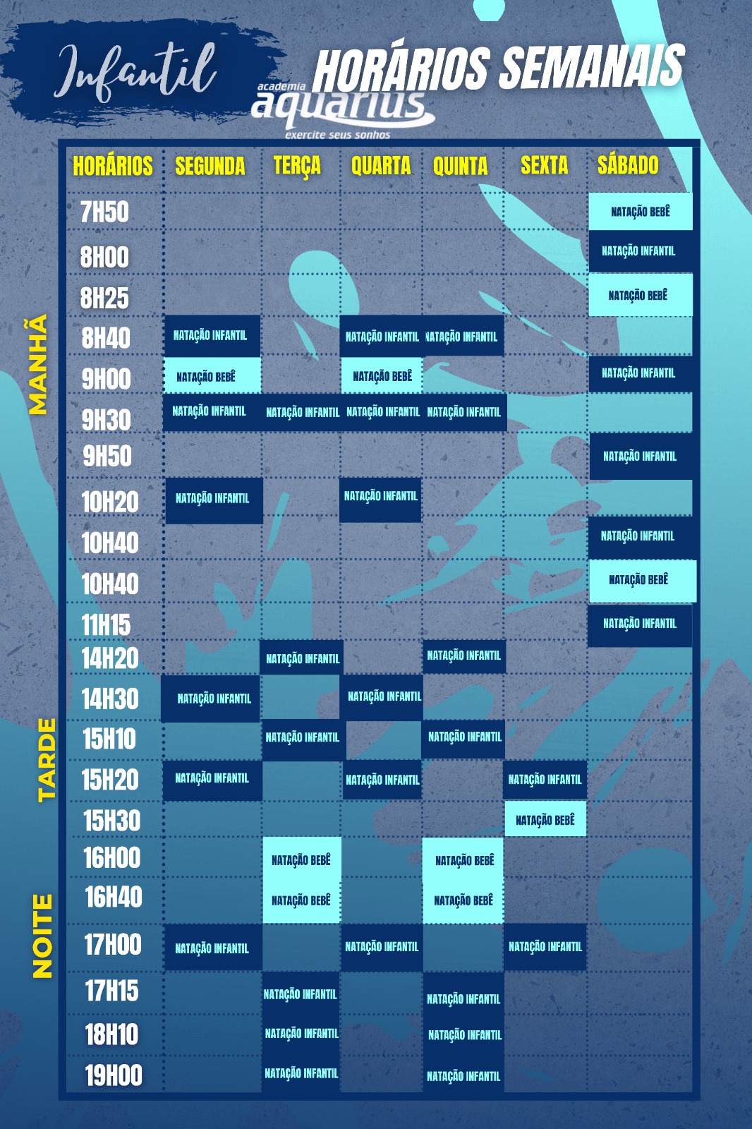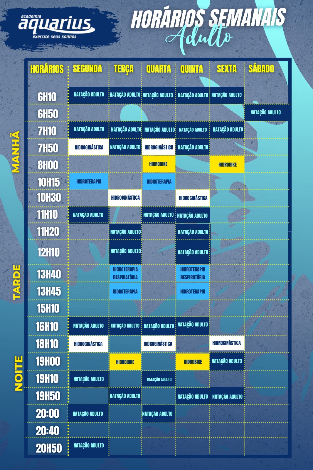 Nossos Horários! Aulas de Natação Adulta Hidroginástica Natação Infantil Zumba Bike Pilates